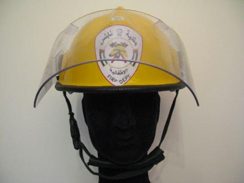 0596 Fire helmet from Palestine. Manufacturer: Pacific Helmets LTD Wanganui New Zealand. Helmet Type: F3DK / 2. Manufacturing date 09/2002. The yellow polycarbonate helmet was used in the fire department of the city of Nablus. The helmet is also manufactured at present (2015). Below the manufacturers description of the helmet: