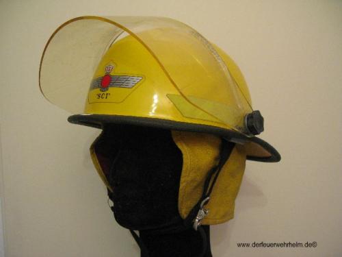 Diese Helme wurden in der Zeit zwischen 1995 und 2010 von der Feuerwehr des Luftwaffenstützpunktes Torrejón bei Madrid getragen. SCI steht für „Servicio Contra Incendio“.